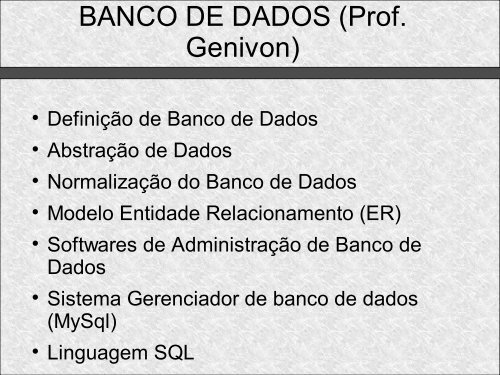 2 Banco De Dados Professor Fernando De Siqueira Banco De Dados I