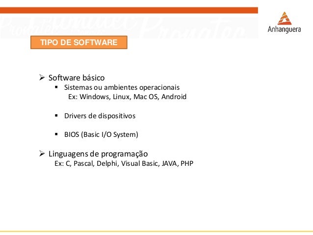 Um exemplo típico de software básico é o bios basic inputouput system de um computador pessoal o kernel de sistemas operacionais como o unix ou o windows nt pe os próprios montadores para linguagens de máquina etc.