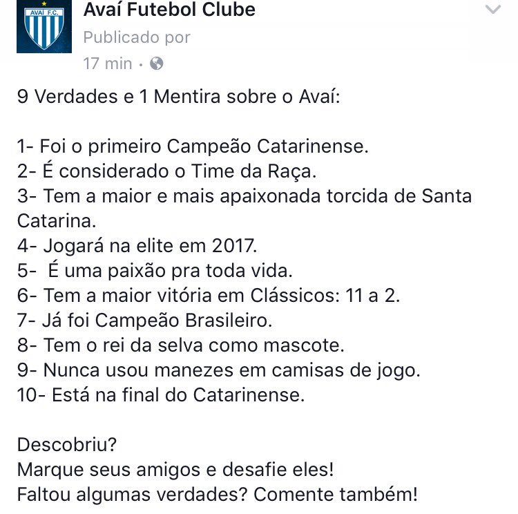 Avai Futebol Clube On Twitter 9 Verdades E 1 Mentira Sobre O