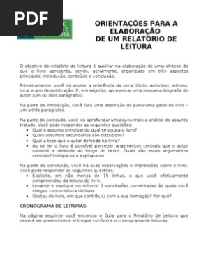 Roteiro Relatorio De Leitura Livros Autor Avaliacao Gratuita