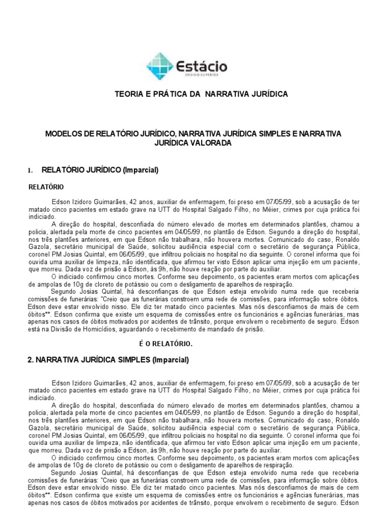 Modelos De Relatorio Narrativa Juridica Simples E Valorada Bem