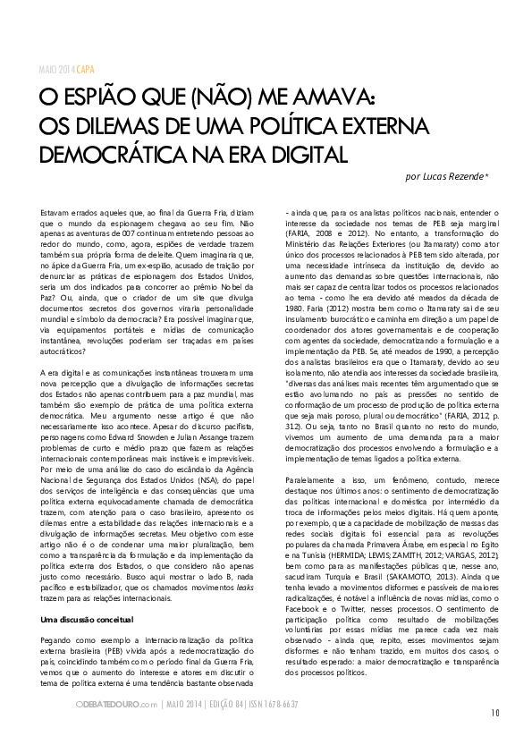 Pdf O Espiao Que Nao Me Amava Os Dilemas De Uma Politica
