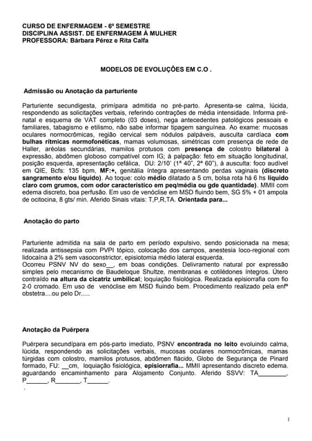 Anotacao E Evolucao De Enfermagem Enfermagem Gravidez