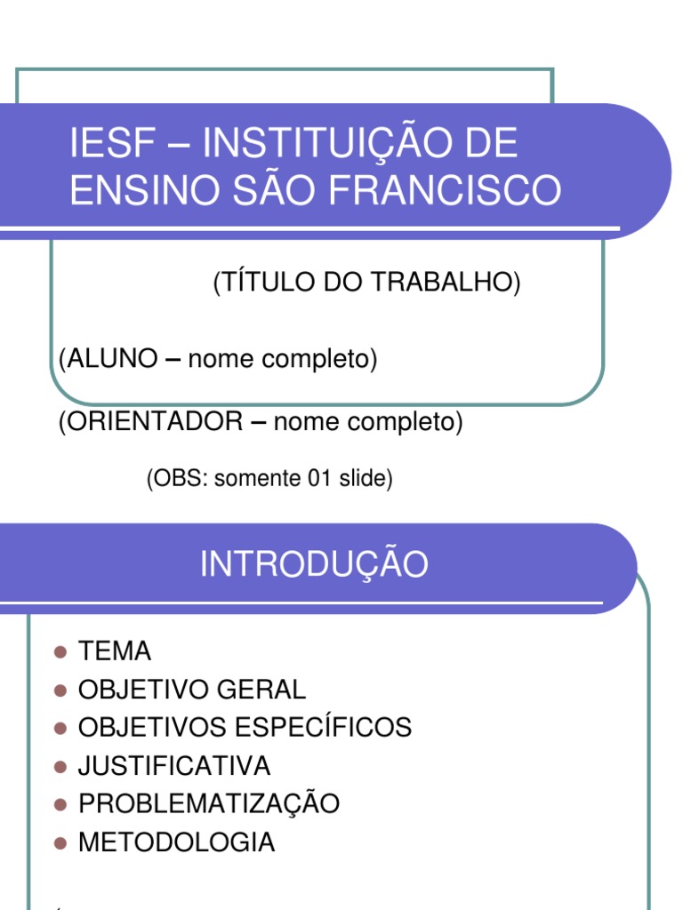 A faculdade de ciências sociais e agrárias de itapeva fait tem um modelo de apresentação de tcc em power point.