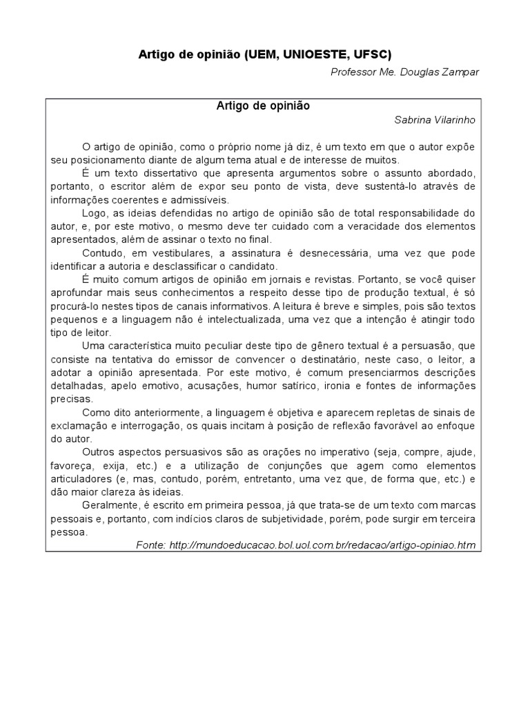 Artigo De Opiniao Um Genero Textual Argumentativo