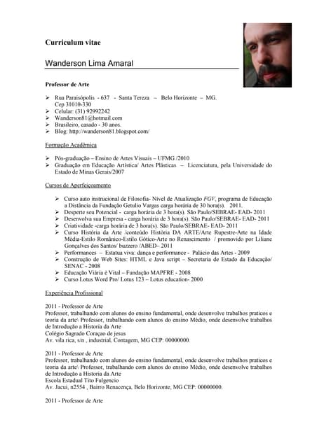 Detalhes detalhados sobre Exemplo De Curriculo De Professor Ensino Fundamental.