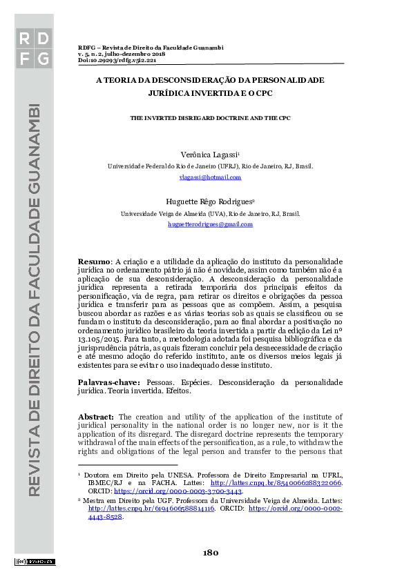 Pdf A Teoria Da Desconsideracao Da Personalidade Juridica