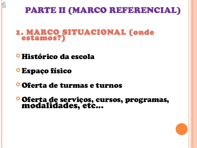 Precisa responder a perguntas como. Neste marco referencial estão postos elementos que situam o contexto geral da escola expressando visão de mundo de sociedade de homem e de educação.