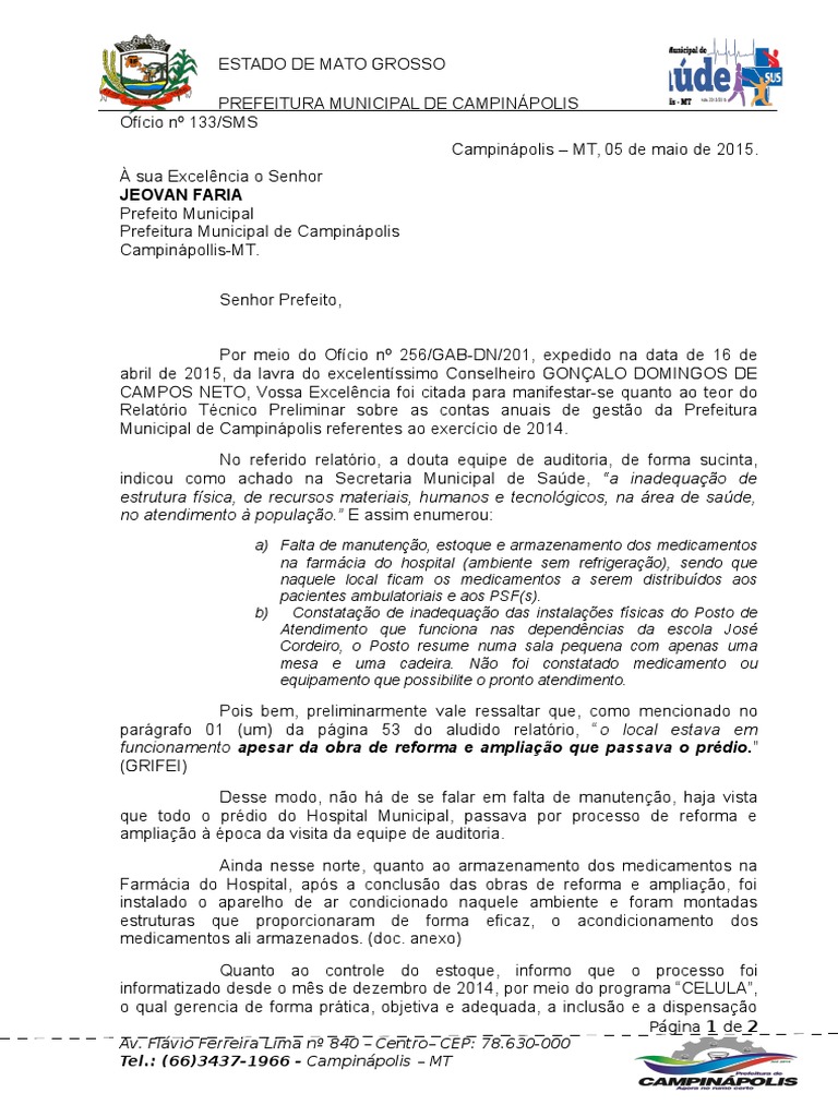 Prefeitura De Caceres Secretaria De Saude Envia Oficio Cobrando