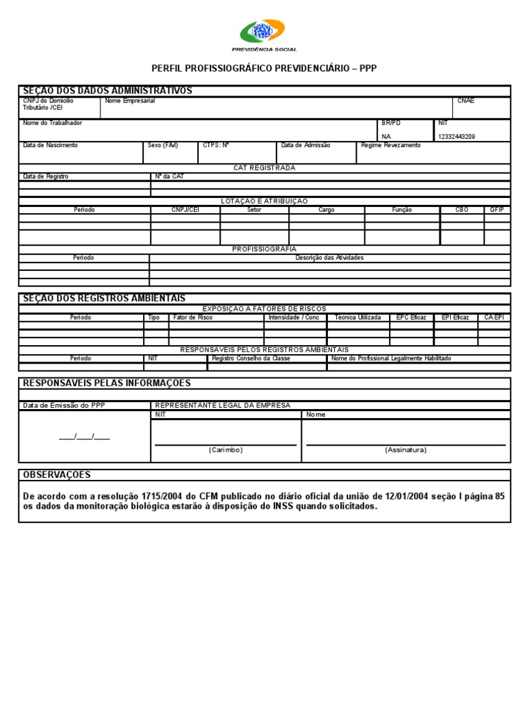 Perfil Profissiografico Previdenciario Ppp Pdf Free Download