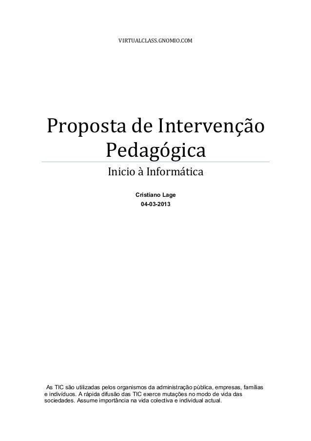 Projeto De Intervencao Pedagogica Na Escola Pdf Free Download