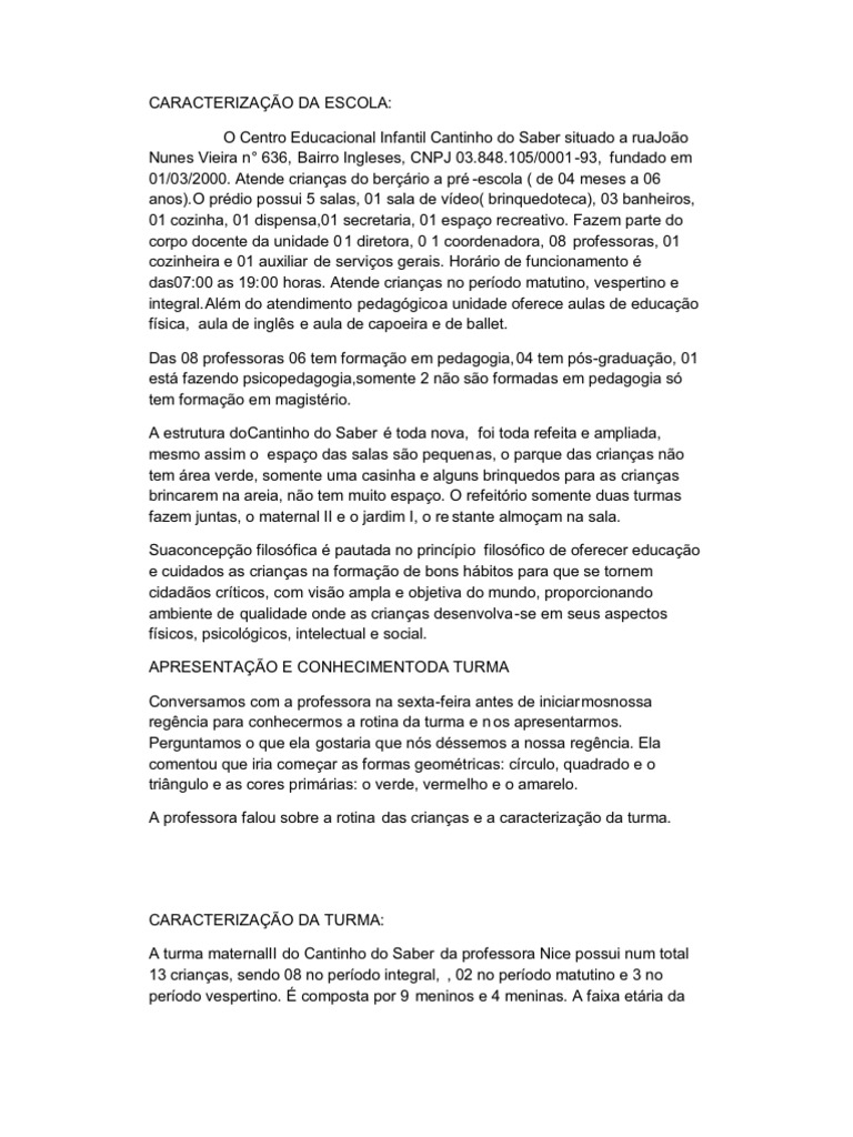 Projeto De Estagio Curso Licenciatura Em Pedagogia Disciplina