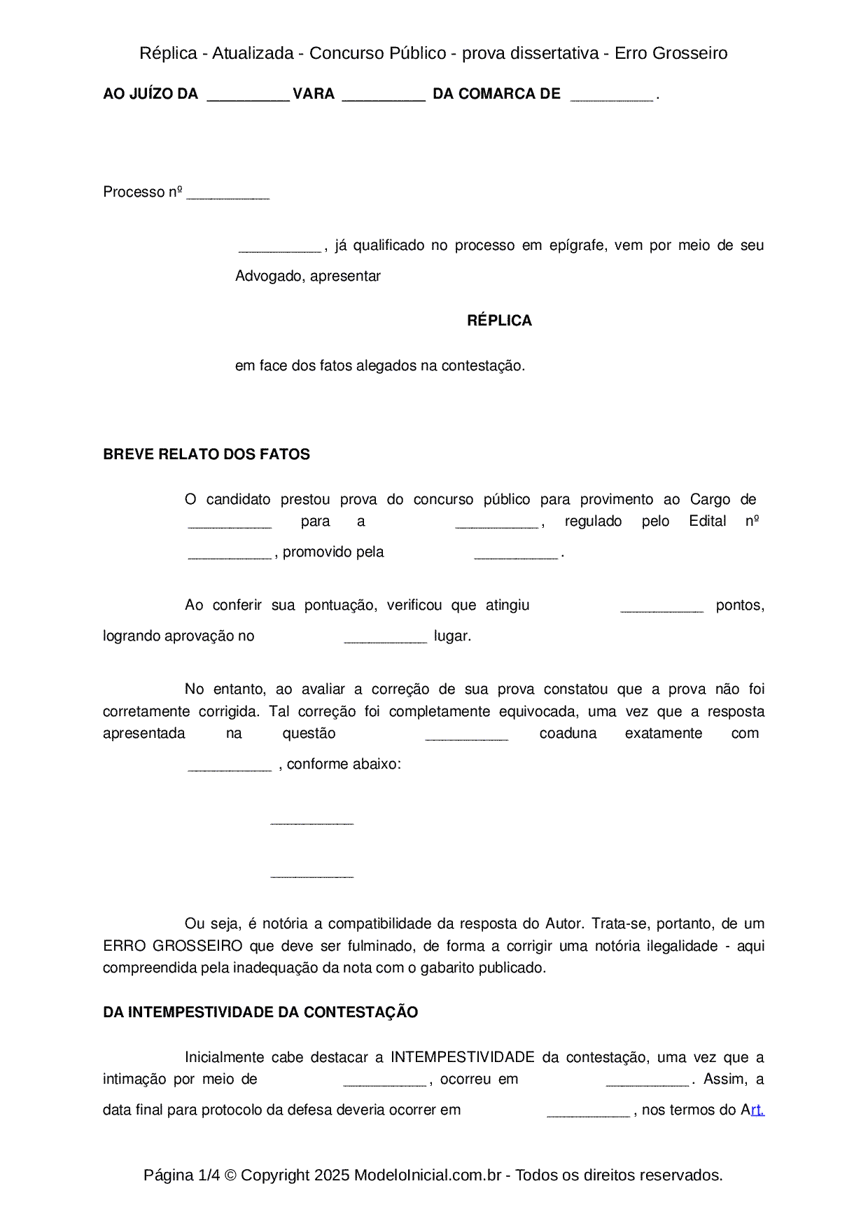 Modelo Replica Concurso Publico Prova Dissertativa Erro