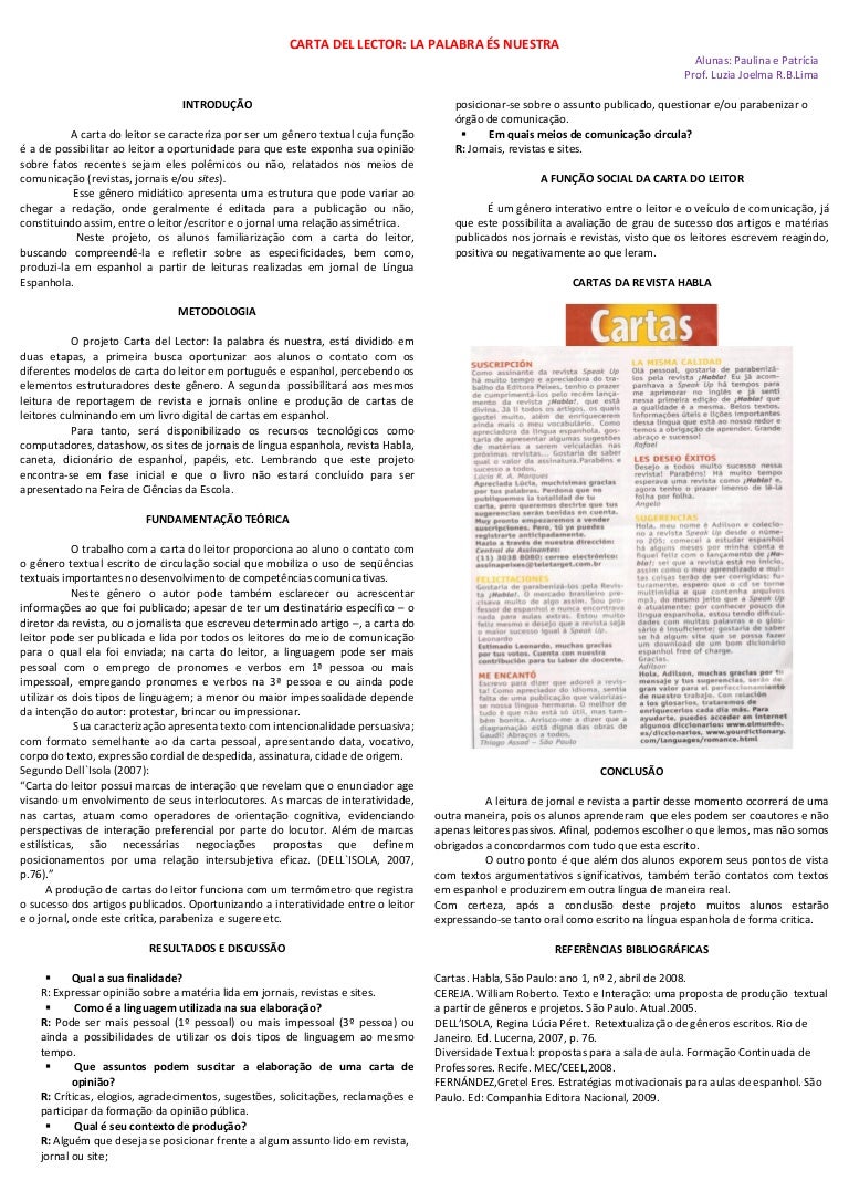 Desta vez, o administrador escreve Exemplos De Carta Ao Leitor Em Espanhol.