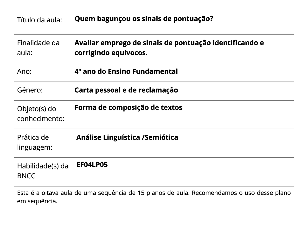Plano De Aula 4º Ano Lingua Portuguesa Quem Baguncou Os