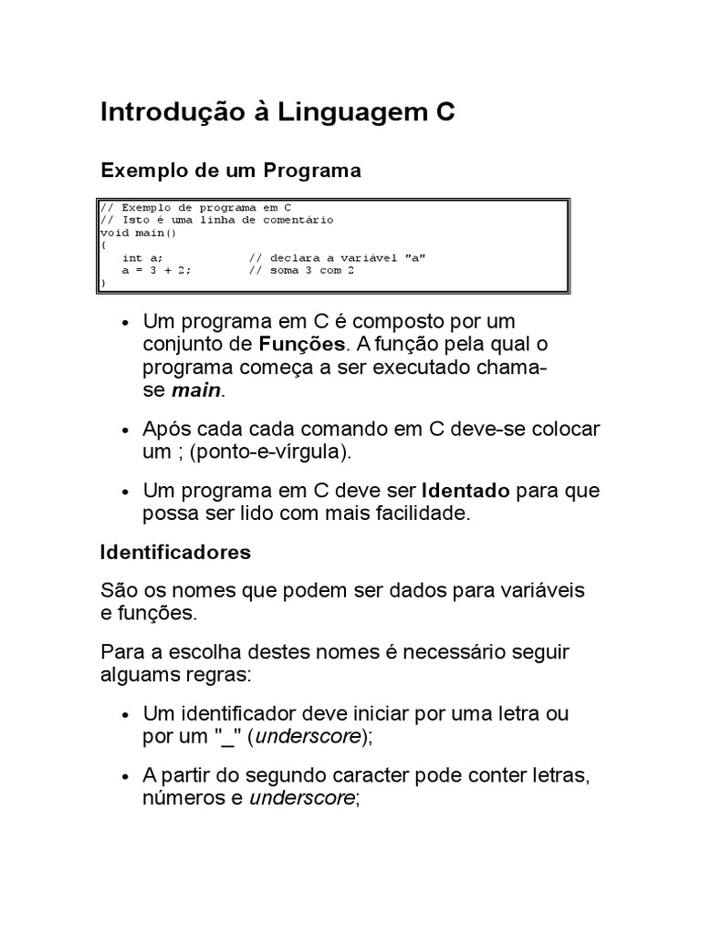 Estrutura Basica De Um Programa Em Linguagem C