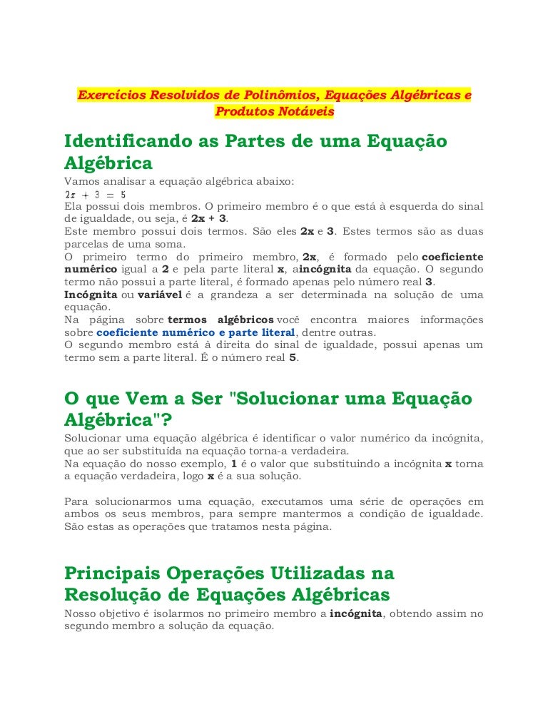 Exercicios Resolvidos De Polinomios Produtos Notaveis