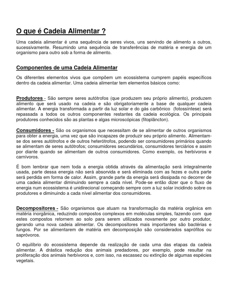 Cadeia Alimentar Produtores Consumidores Decompositores E Mais