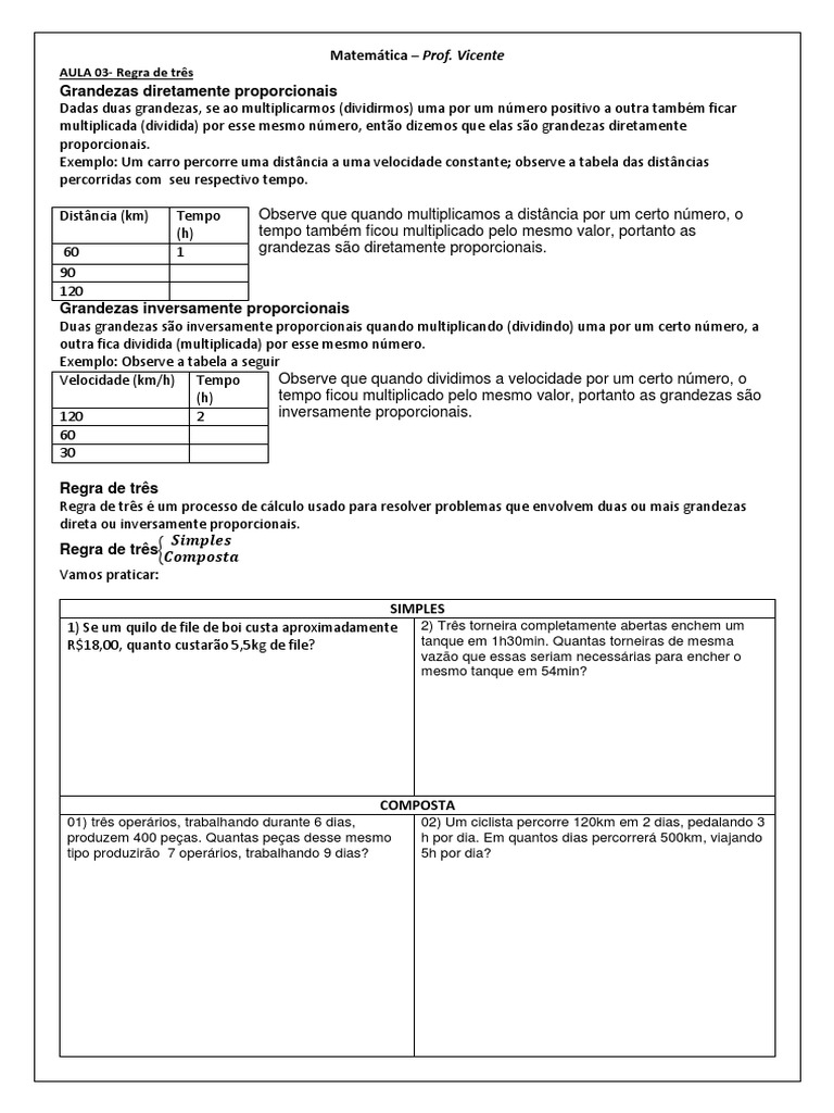 Aula 3 Grandezas Diretamente E Inversamente Proporcionais Regra