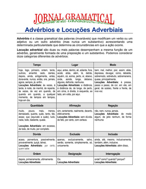 Adverbios E Locucoes Adverbiais