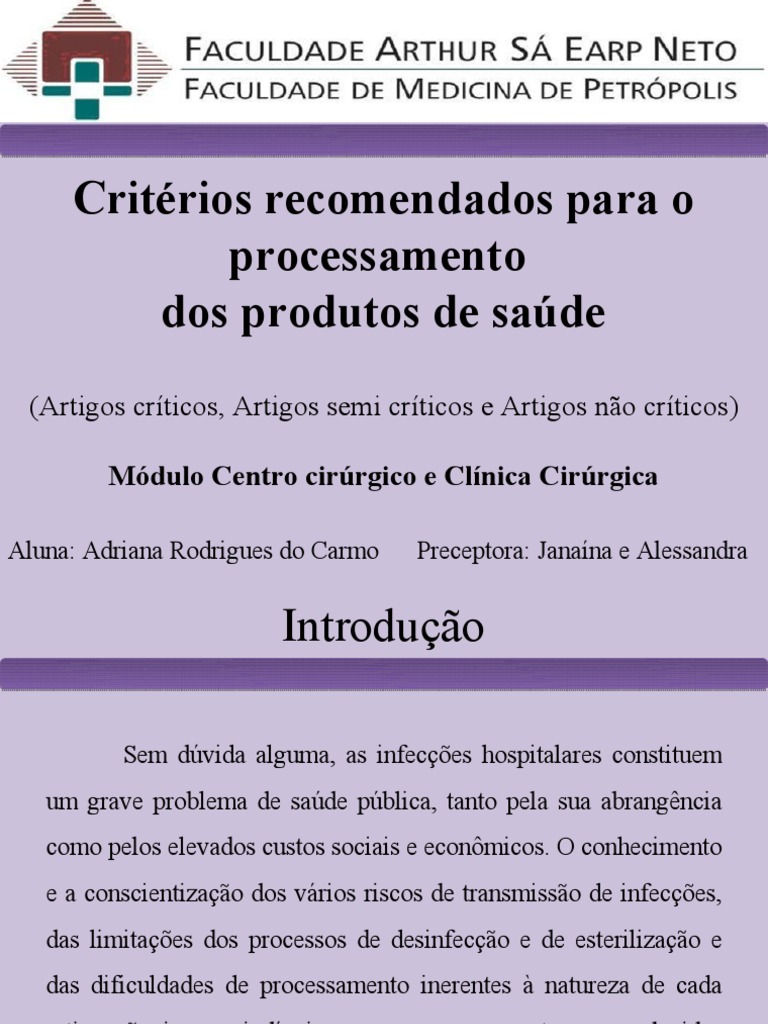 Artigos Criticos Semi Criticos E Nao Criticos Esterilizacao