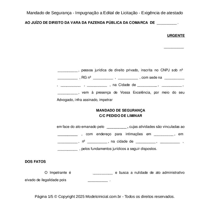 Modelo Mandado De Seguranca Impugnacao A Edital De Licitacao