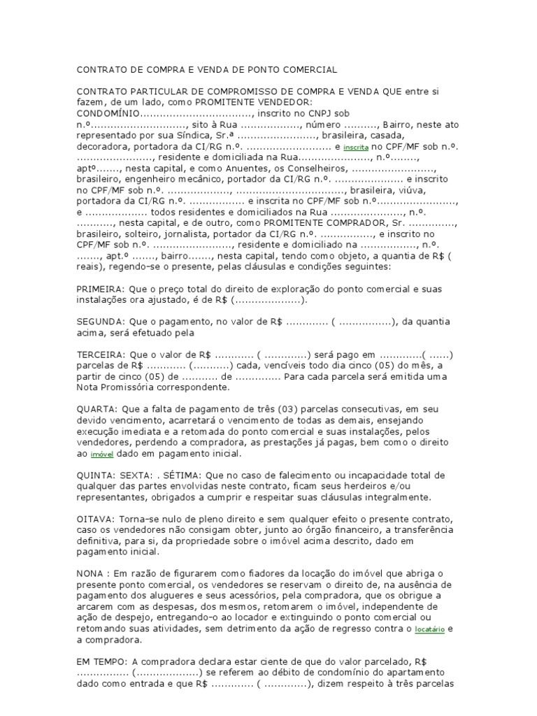 Modelo Contrato De Compra E Venda De Ponto Comercial