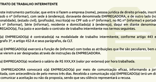 Completo com dados Exemplo De Contrato De Trabalho Intermitente.