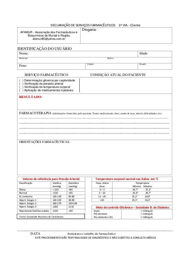 Declaracao De Servicos Farmaceuticos Modelo Fernando Calais 2014