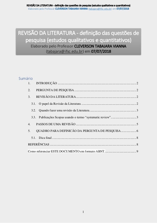 Metodologia Cientifica Aspetos Principais Da Revisao Da Literatura