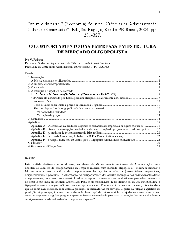 Pdf O Comportamento Das Empresas Em Estrutura De Mercado