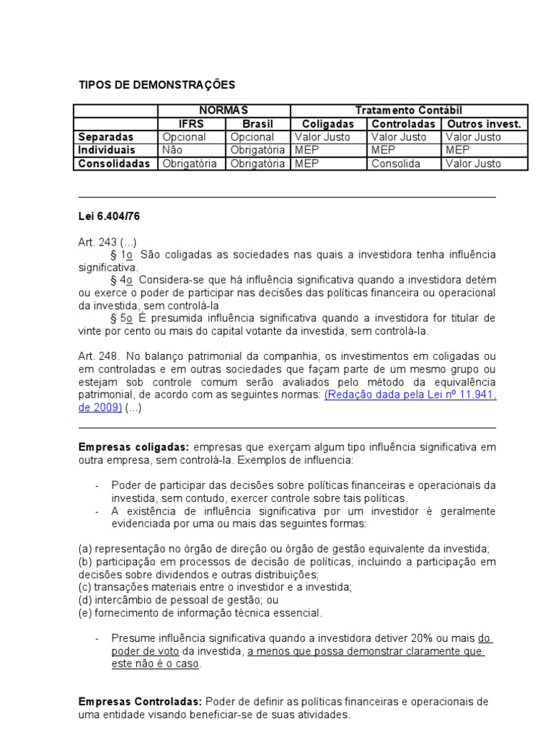 Tipos De Demonstracoes Acionistas Investimentos Avaliacao