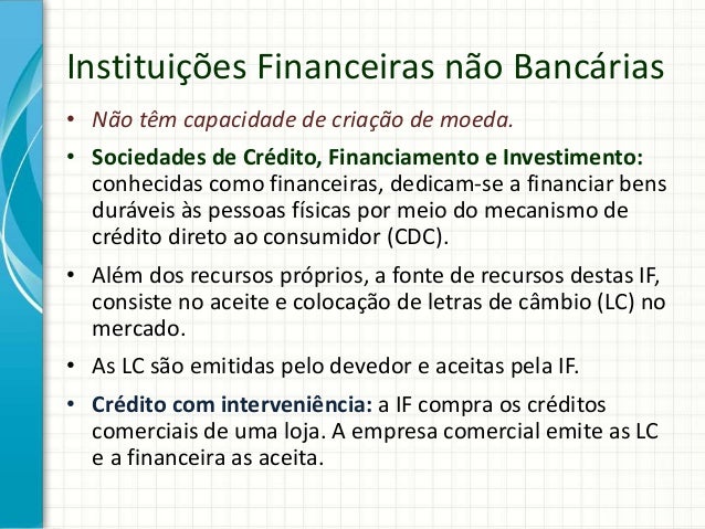 Instituições não bancárias instituições financeiras não bancárias ou não monetárias são aquelas não autorizadas a captar recursos sob a forma de depósito à vista.
