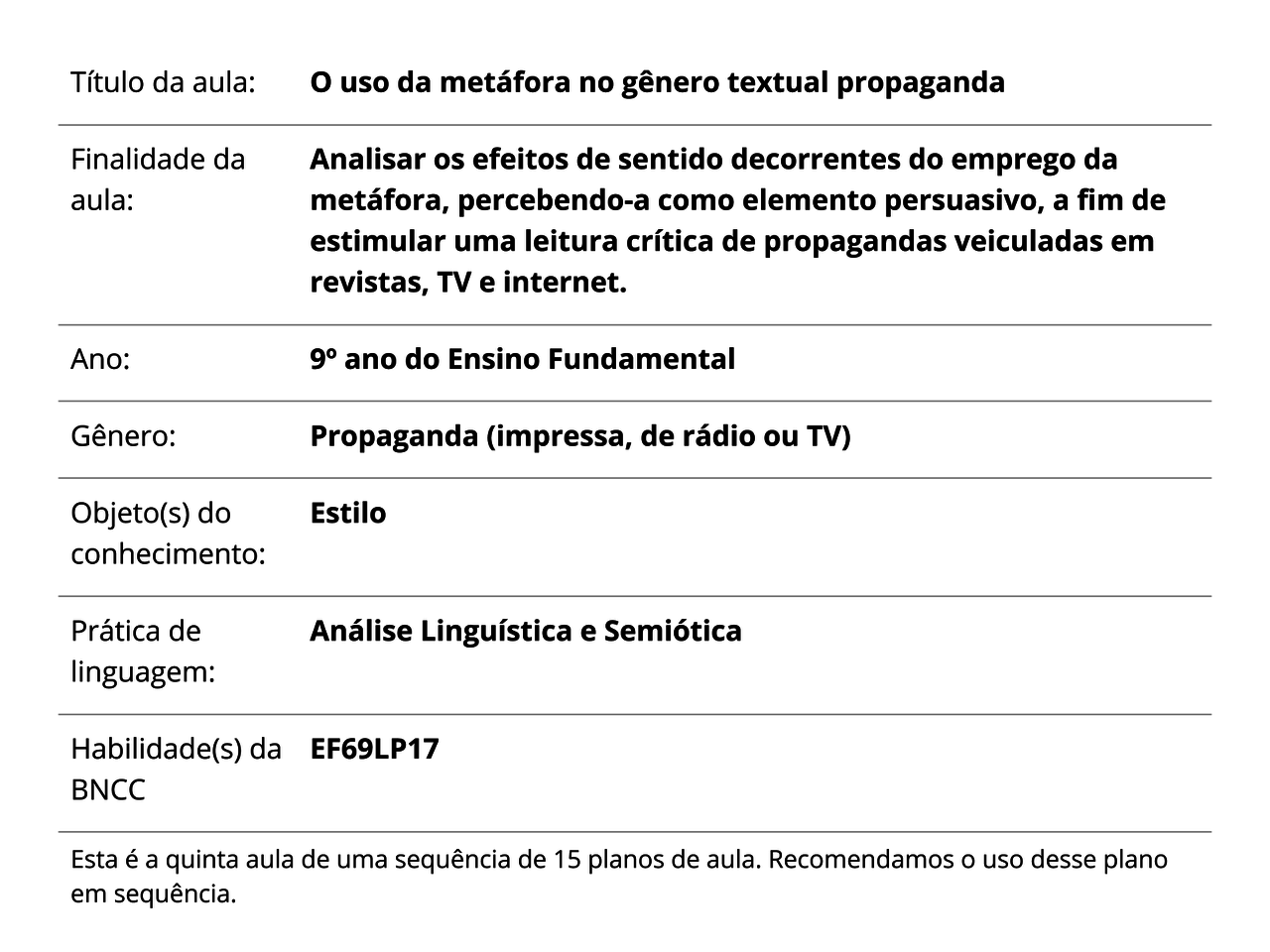 Plano De Aula 9º Ano Lingua Portuguesa O Uso Da Metafora No