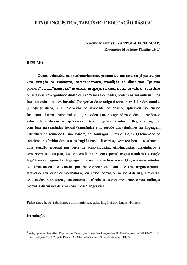 Pdf Etinolinguistica Tabuismo E Educacao Basica No Brasil