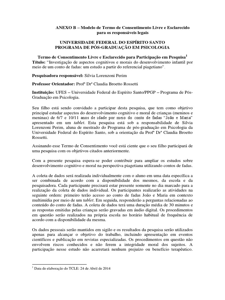 Exemplo de termo de consentimento livre e esclarecido tcle.