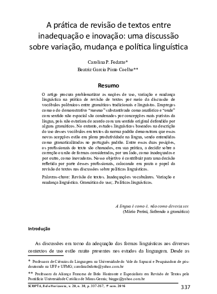 Pdf A Pratica De Revisao De Textos Entre Inadequacao E Inovacao