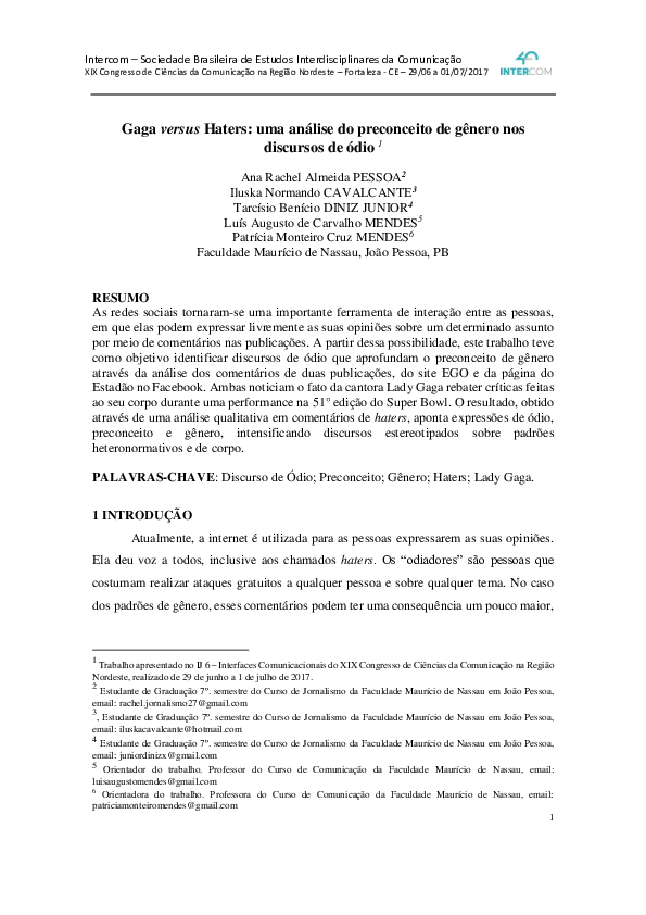 Doc Gaga Versus Haters Uma Analise Do Preconceito De Genero Nos