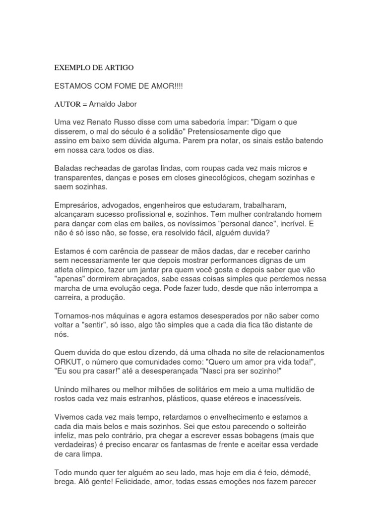 Exemplo De Artigo De Opiniao Arnaldo Jabor Amor Lazer