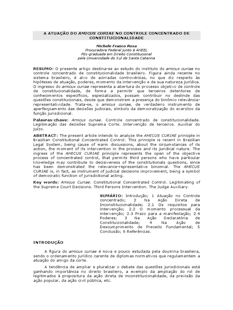 Amicus Curiae Pessoa Fisica E Acao Direta De