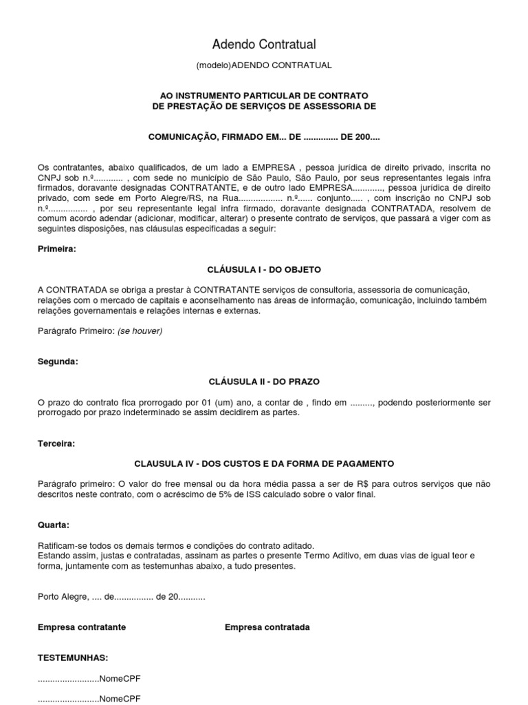 Revisões sobre Exemplo De Aditivo De Contrato De Prestação De Serviços.