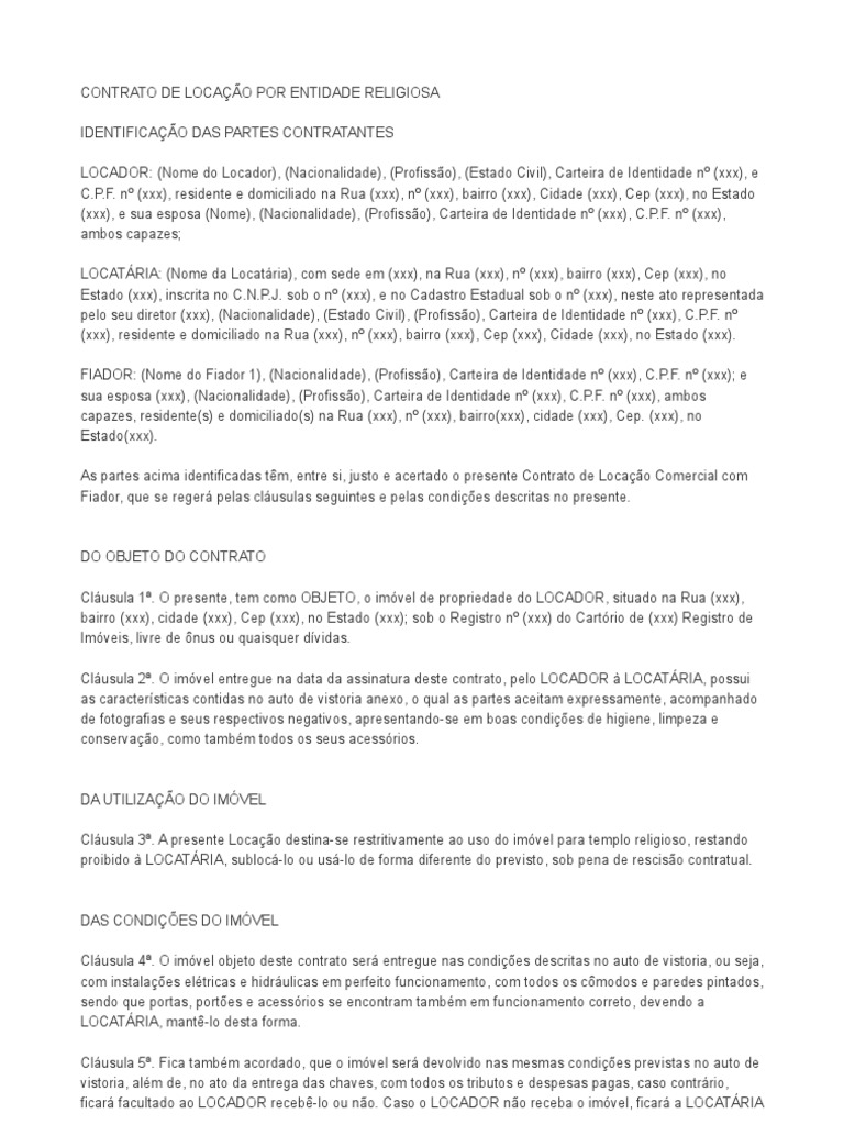 Contrato Locacao Igreja Governo Politica