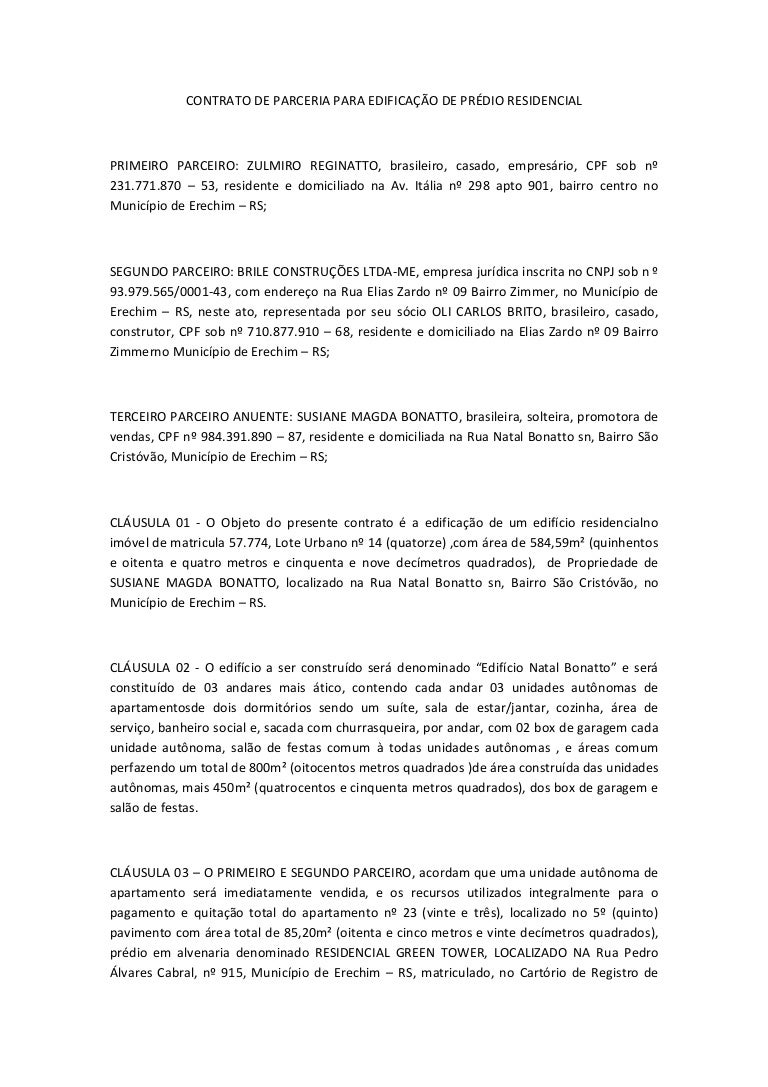 Contrato De Parceria Para Edificacao De Predio Residencial
