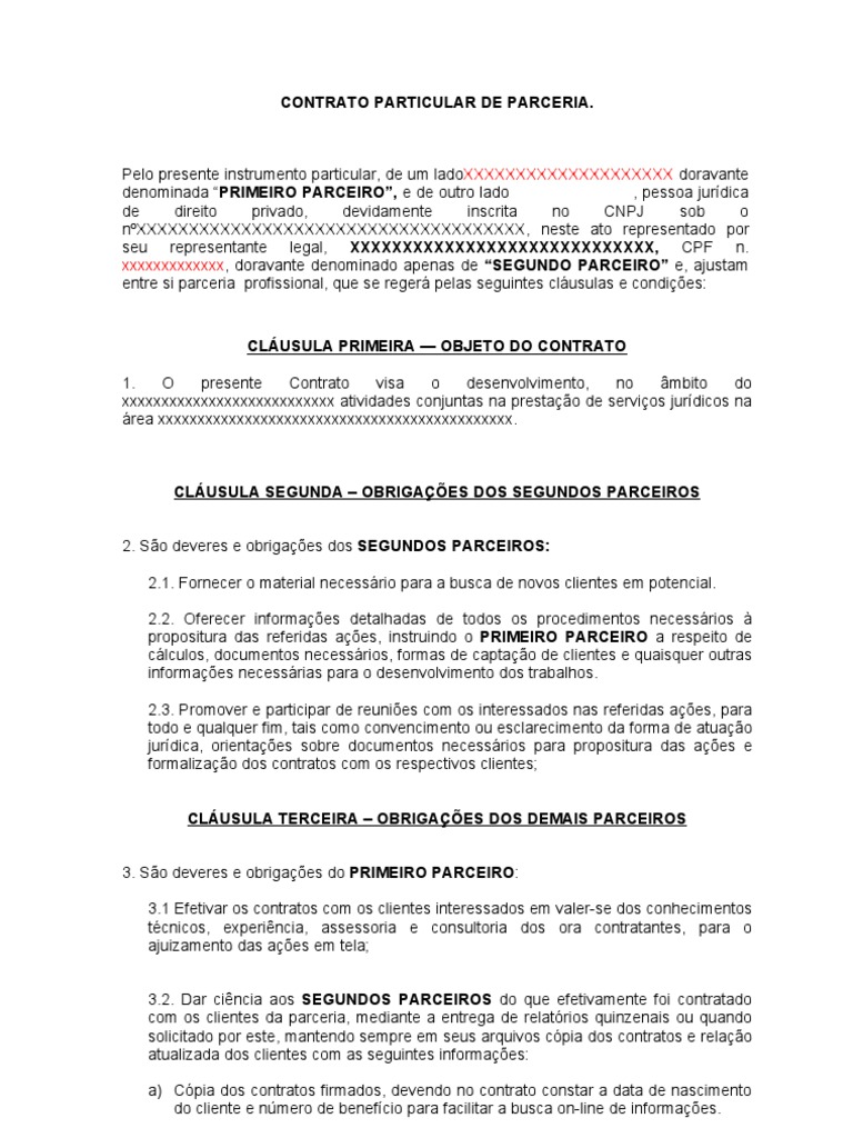 Modelo Contrato Parceria Lei Das Obrigacoes Direito Civil