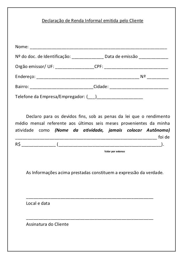 Declaracao De Renda Informal Para Autonomo Como Fazer Modelo