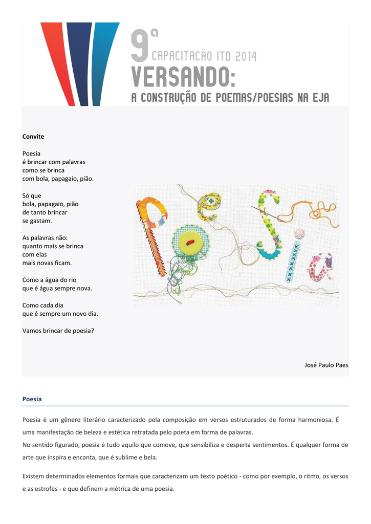 Convite Poesia E Brincar Com Palavras Como Se Brinca Com
