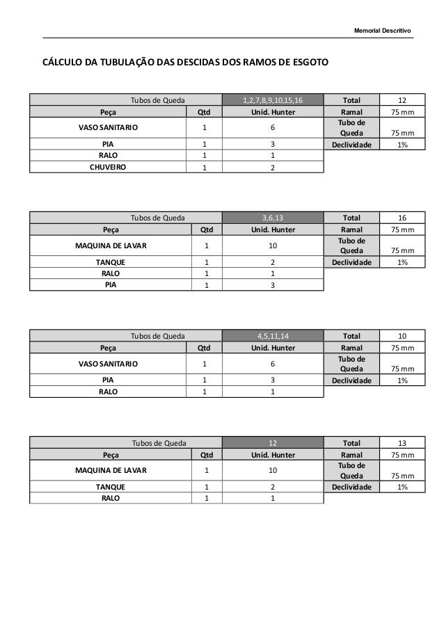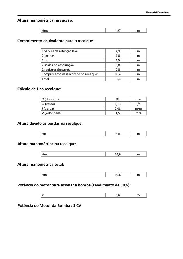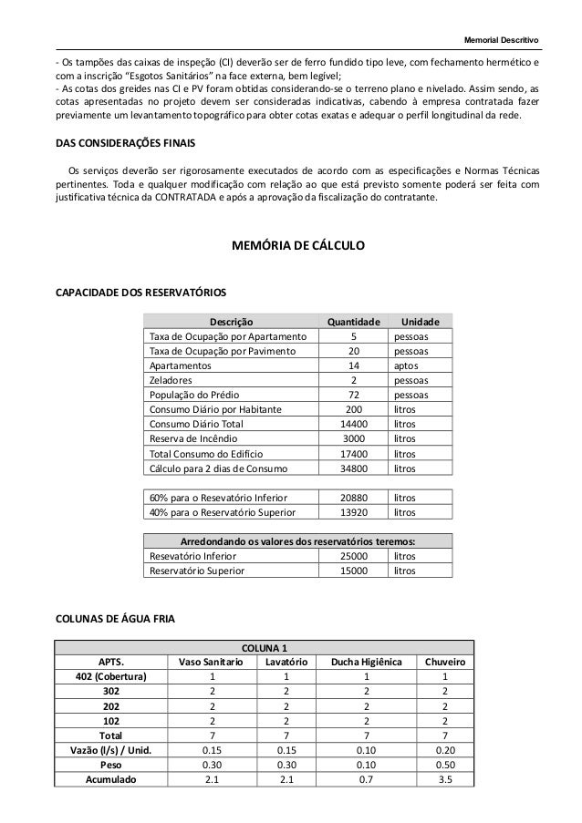 Memorial Descritivo E Memorial De Calculo Hidrossanitaro Pdf