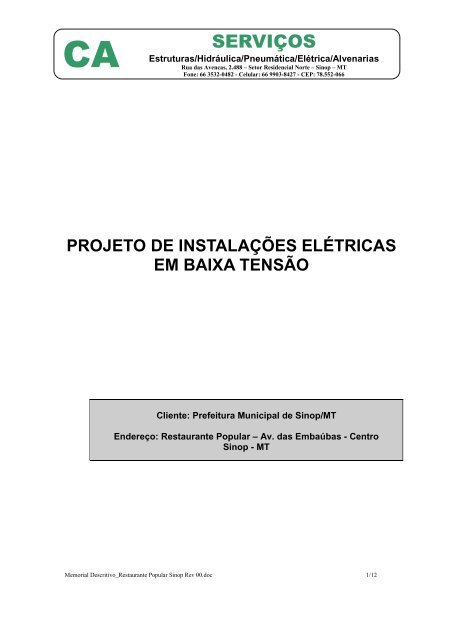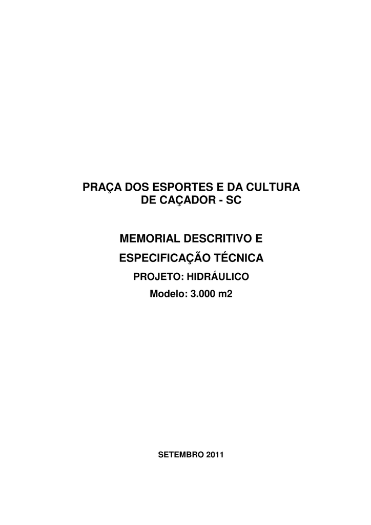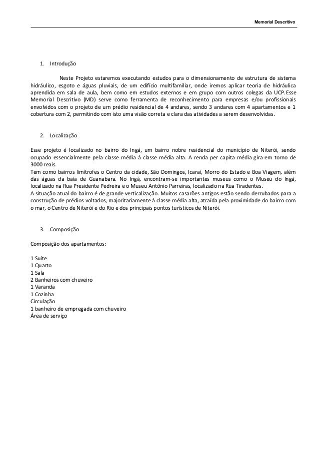 Dados sobre Exemplo De Memorial Descritivo De Projeto Hidraulico.