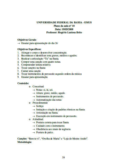 Musica Materiais De Musica Plano De Aula De Musica Um Exemplo