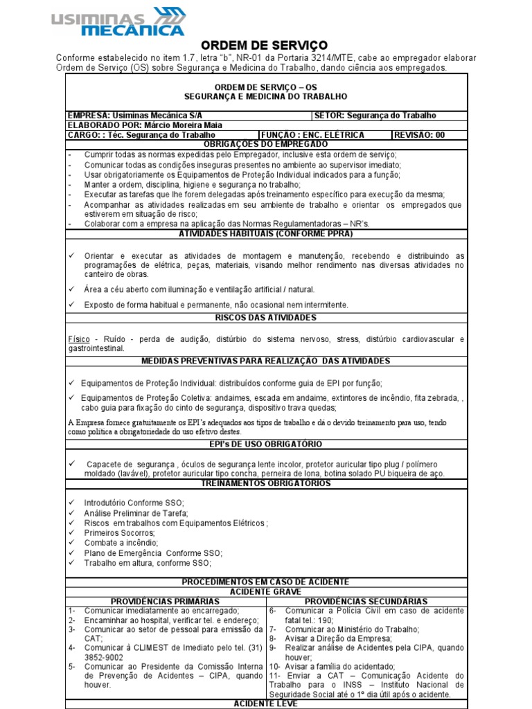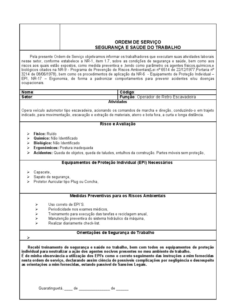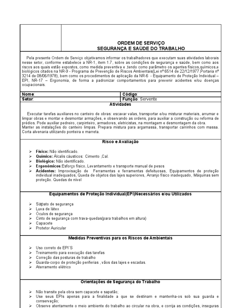 Ordem De Servico Seguranca Do Trabalho Modelo